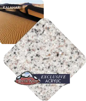 Arctic Spas vackra akrylfärger Dakota & Kalahari är populära då de för tankarna till naturen och ser likadana ut år efter år. Dessa texturerade ytor ger bättre fäste, du kan känna dig lugnare när det gäller barn eller personer med begränsad rörlighet. Dessa tre ytor används bara till Arctic Spas.