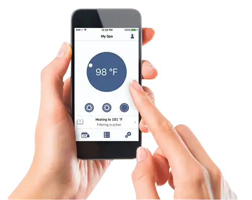 in.touch 2 applikationen finns tillgänglig för iOS- eller Android och gör det mycket enkelt att kontrollera och ändra inställningar i ditt spabad även när du inte är hemma.