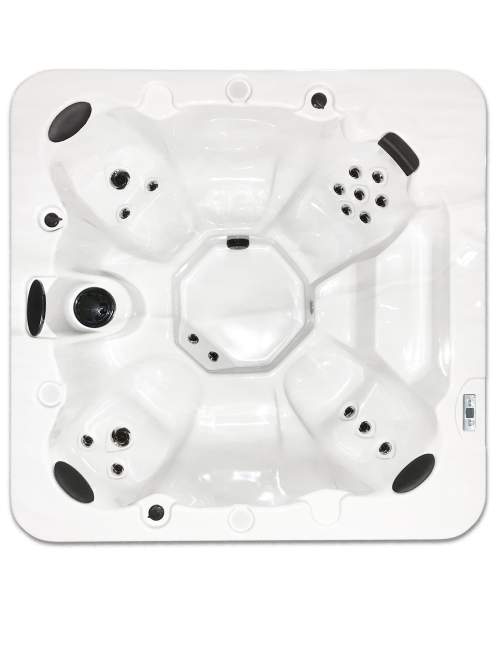 Aurora är ett funktionellt familjebad med plats för upp till sex personer. Badets utformning erbjuder både ergonomiska säten med varierande sittdjup och bredd samt en rymlig fotbrunn. Auroran är utrustad med den moderna skimmningsfltreringen och 20 terapeutiska vattenstrålar som ger högkvalitativ massage och erbjuder en trevlig stund tillsammans.