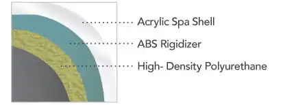 Grunden till alla kvalitetsspabad är styrkan i höljet/skalet/skrovet. Core Seriens spabad har ett antal högglansiga släta eller texturerade ABS-stärkta akrylfärger. Sedan sprutas ett patenterat värmeöverförande (inte VOC) kompositmaterial kallat Elastocast på skalet för att ge det en ihärdig och heltäckande & självbärande struktur. Detta miljömässigt ansvarsfulla sätt att bygga ett skrov till spabad ger oss möjligheten att dra fördel av vårt eget system Free Heat Isolering.