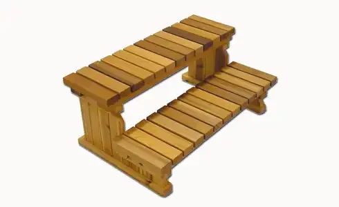 Vår robusta 2-stegstrappa ger säkerhet och komfort vid placering av spabad i marknivå.