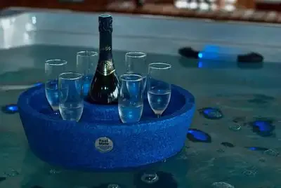 Med denna flytande bar så är det enkelt ta med er något gott att dricka till spabadet eller poolen. Lite kyld dryck i spabadet är aldrig fel och man håller lätt ordning på just sitt glas tack vare de olika färgmarkeringarna som man sätter på kanten.