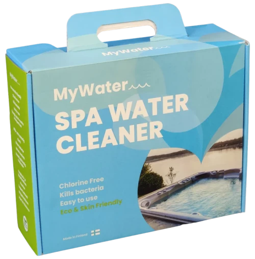 MyWater -Spa Water Cleaner är en 100% klorfri vattenrengörnings produkt för spabadet, badtunnor och små pooler. Inga andra kemikalier eller rengöringsprodukter behövs för att produkten skall fungera. Den lämnar inga dofter eller rester i badvattnet utan håller vattnet rent och kristallklart! Du slipper att mäta och testa badvattnets sanitetsvärde varje vecka. Produkten MyWater är tillverkad och utvecklad i Finland.